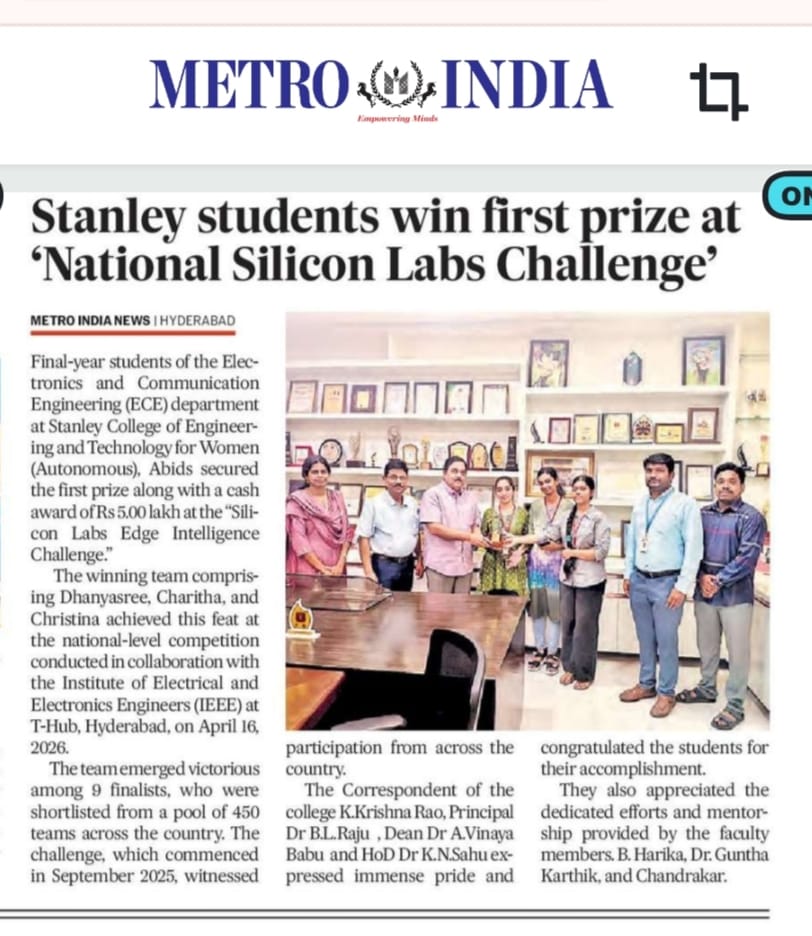 A Moment of Pride & Excellence! We are thrilled to announce that our ECE 2026 passed-out students — Ms. Dhanyasree, Ms. Charitha, and Ms. Christina — have secured the FIRST PRIZE