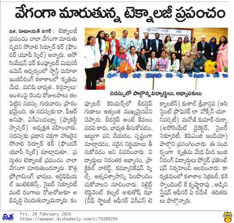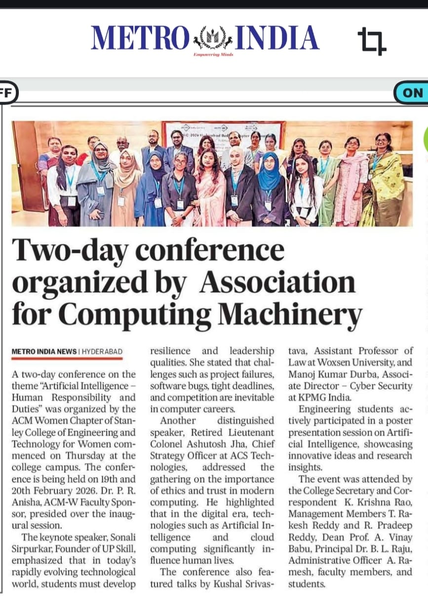 The ACM-W Stanley Student Chapter successfully conducted Day 1 of AICWiC’26 on 19th February 2026, focusing on the theme Responsible AI and Human-Centered Leadership .