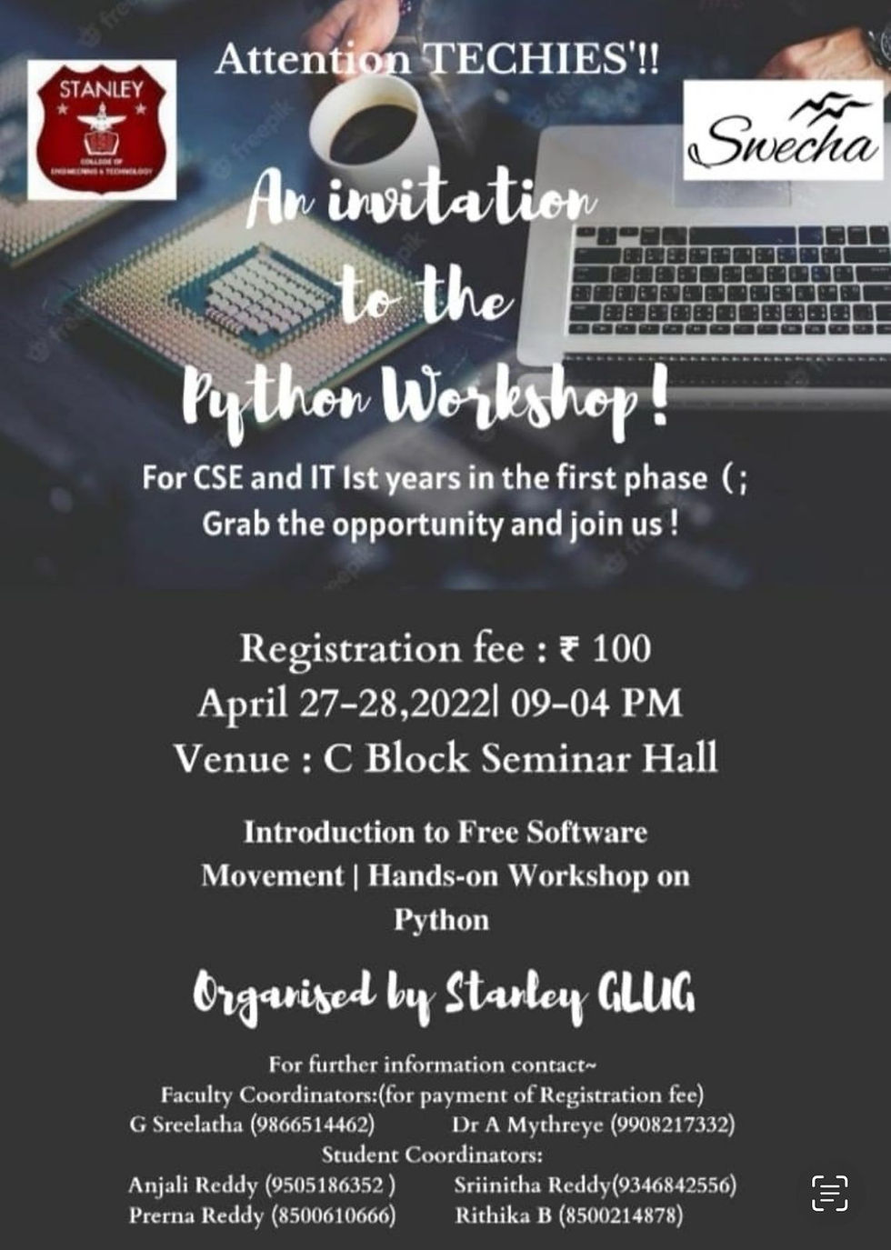 ✨‘PYTHON WORKSHOP’ was a 2 day hands on Workshop session conducted by the Stanley GLUGStanley CollegeMar 19, 20240 min read